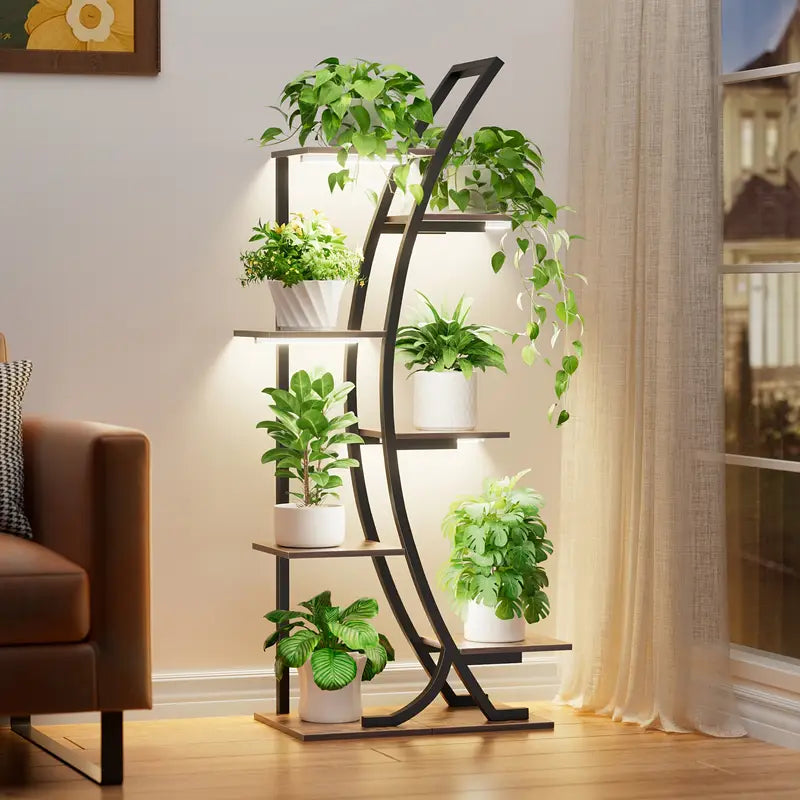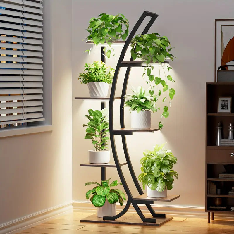 Showcase your plants and décor in style with this multifunctional 7-tier plant stand. Crafted with a sleek curved design and durable metal frame, it includes built-in grow lights to help your plants thrive indoors. Perfect for the living room, study, balcony, or any corner of your home, this stand also doubles as a display shelf for books, photo frames, and ornaments. Both practical and decorative, it makes a thoughtful gift for plant lovers and home décor enthusiasts.