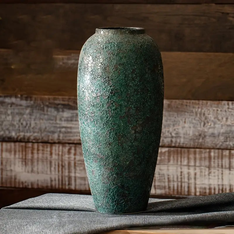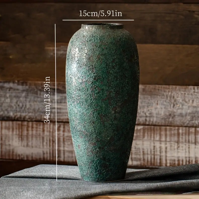 1pc Rustic Ceramic Green Vase, Suitable for Living Room Bedroom Table Decor, New Home Gift